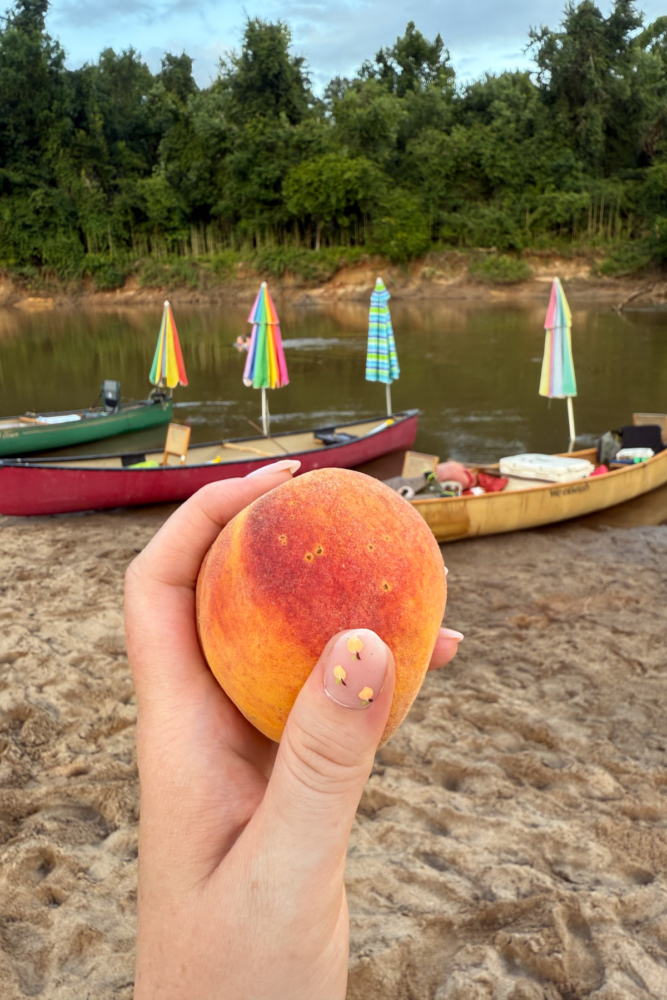 In July, the South Georgia heat is stickier than a ripe peach. Like clockwork, 40 friends and I head down to the Flint River for what we lovingly call “The Peach Paddle.” It’s a long, sweaty weekend of canoeing, camping on sandbars, and gorging on peaches while trying to stay partially submerged in the red clay-stained river whenever we can.