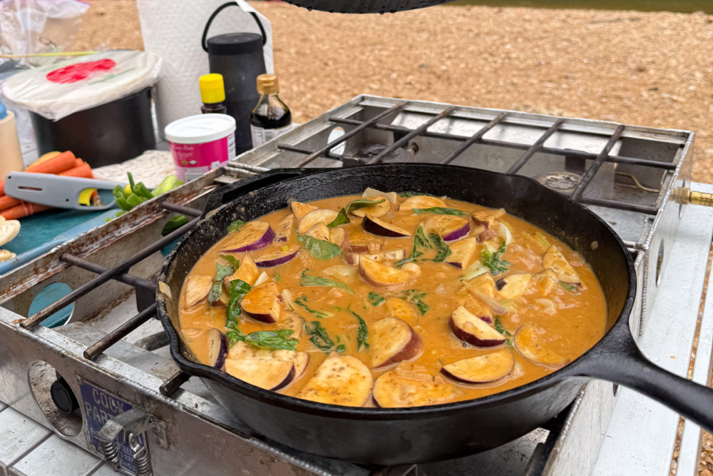 Prep your favorite chili, curry, or stew at home. Vacuum seal and freeze. At camp, reheat by boiling in a pot of river water—no cleanup required. Bring a couple extra ingredients to garnish (I love sour cream, shredded cheese, diced onion and jalapeno for chili!).