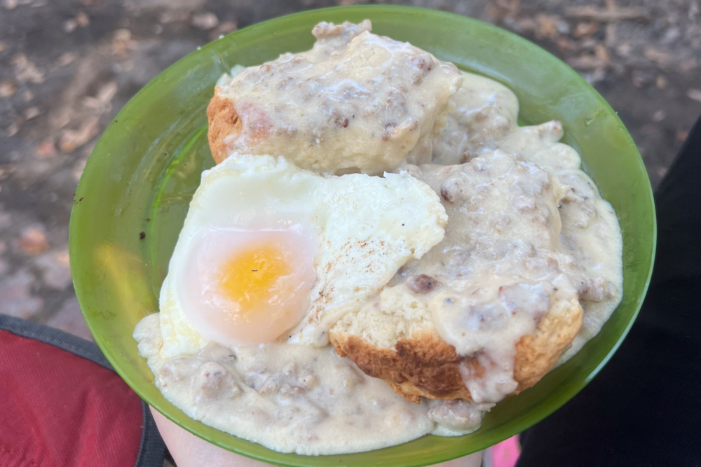 Campfire Dutch Oven Biscuits with Sausage Gravy