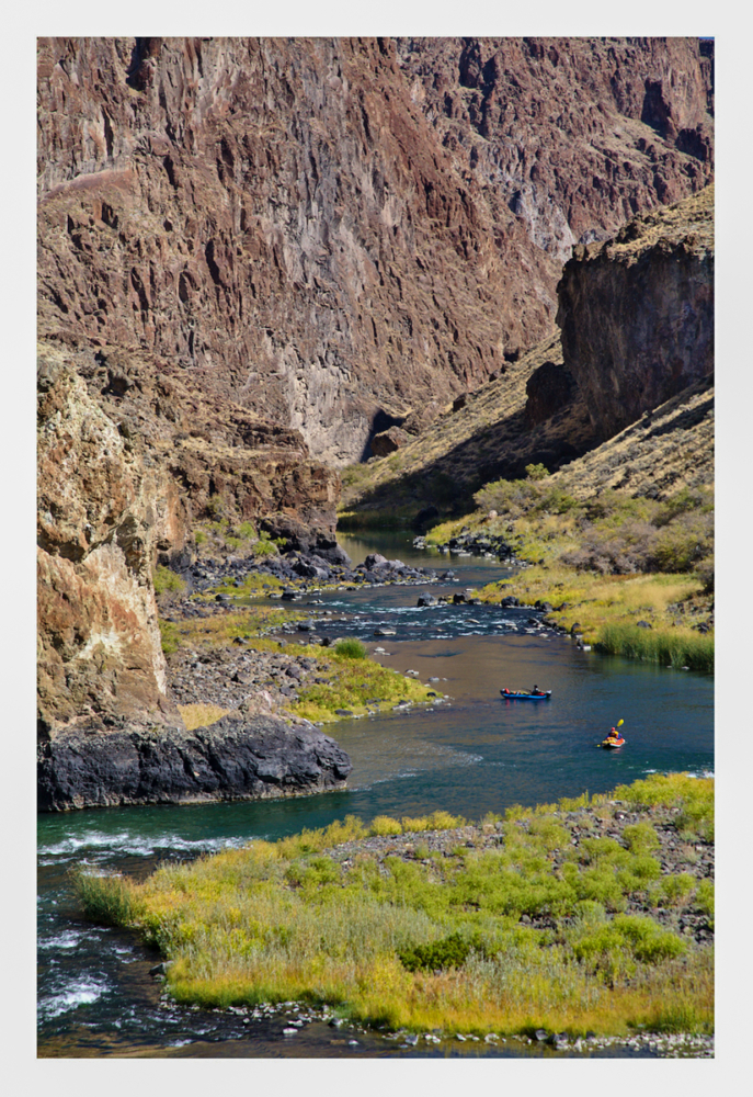 A broad, spacious flat with grazing cattle opens to our left at Burn Canyon. We see a truck leading a phalanx of dust a mile off, a rancher no doubt, the road is private. I explain the situation to Ken as I scope the water ahead, looking for the tell-tale dimples and swirls marking a shelf of shallow basalt columns over an area the size of a basketball court. The river widens, flowing smooth and steady. I spot it, finally, and ferry river right. I tell Ken to stand beside me and be ready to step out and hold the boat. He picks up his rod and vest.