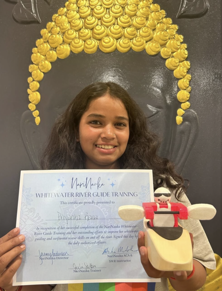 I am deeply thankful to our ACA instructors — Elisha, Jeremy, Julie, and Jessica — for their patience, guidance and belief in us. Their teaching helped shape us into confident and responsible river professionals. None of this would be possible without the Nari Nauka program, Worldwide Women of Whitewater, and Red Chilli Adventure. Thank you.