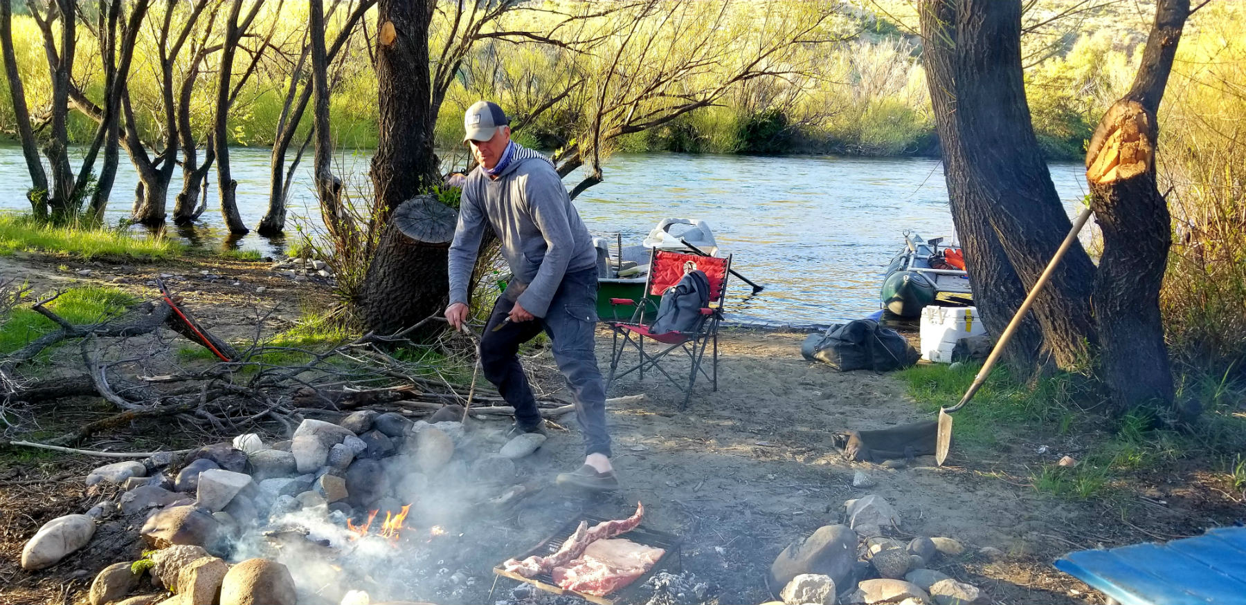 The coals ran hot all night, we drank Fernet and coke and slept perfectly on NRS river beds and roll-a-cots under a thick blanket of stars. The next day we did a boat swap and Diego and I had a great time catching trout on the cataraft until a stiff tailwind pushed us toward the takeout just past the confluence with the Collon Cura River.